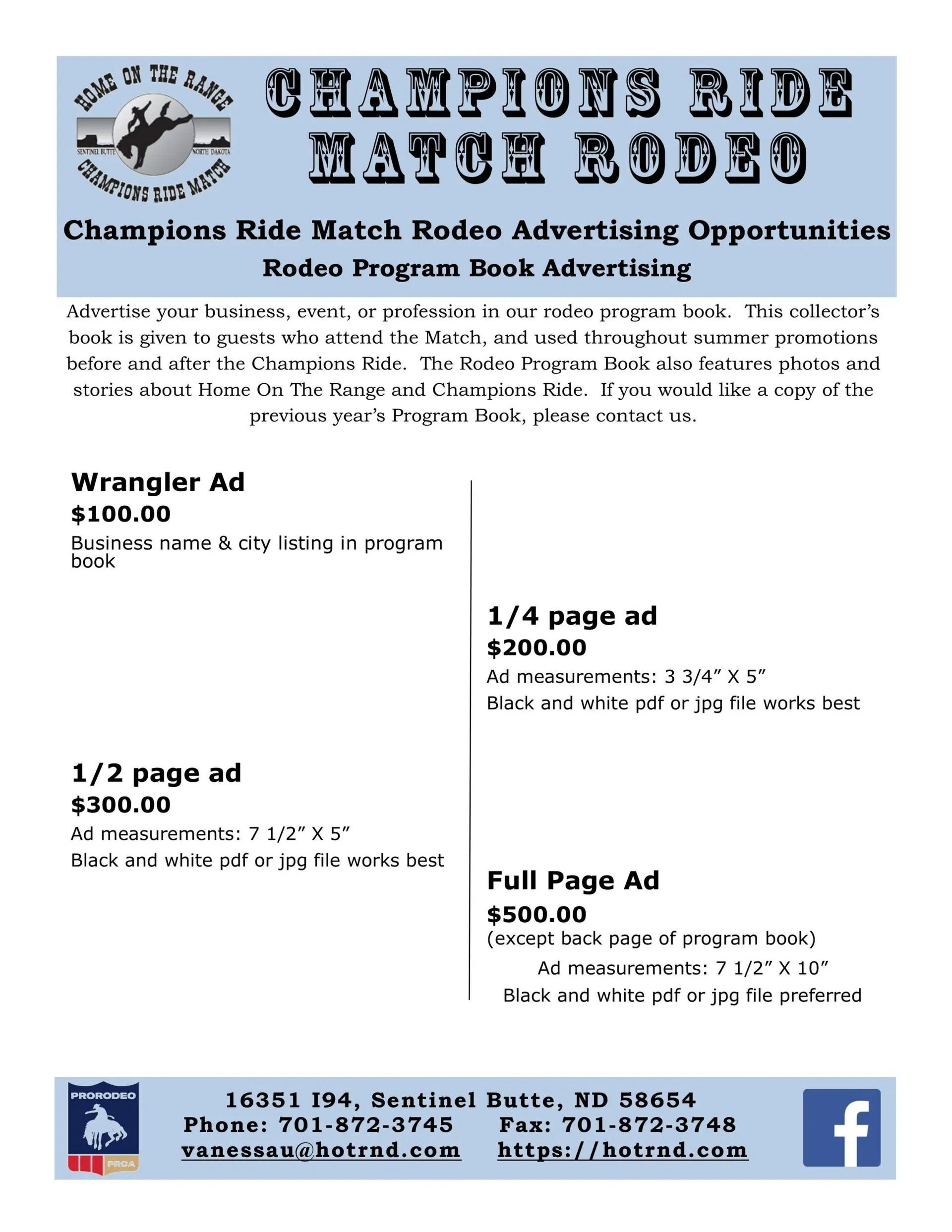 - Business name or logo on rodeo poster